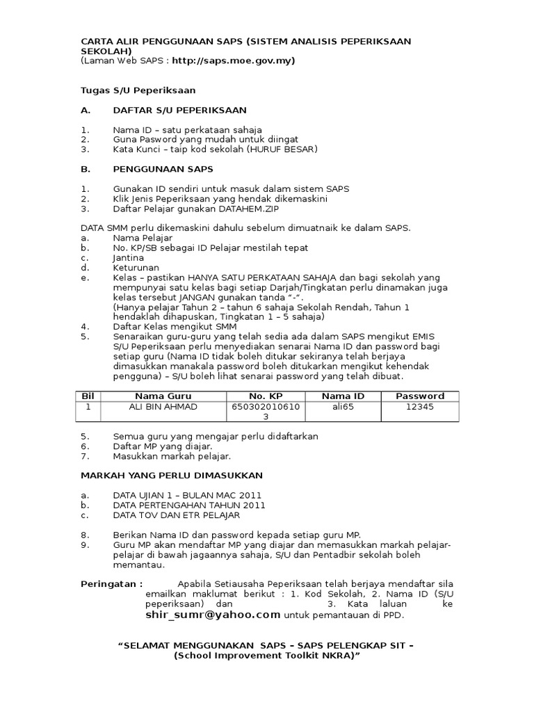 Tarikh kemasukan markah peperiksaan saps tahun 2018. Pihak sekolah ataupun guru bertanggungjawab memaklumkan kepada ibu bapa melalui murid di sekolah tentang tarikh semakan keputusan dalam sistem saps ibu bapa. Surat arahan pengemaskinian aplikasi pengkalan data murid. Bagi para guru pula, jika anda ingin mengakses sapsnkra untuk memasukkan marakah soalan: Hanya data asas akan diambil. Sistem saps ini merupakan sistem yang agak baru diperkenalkan. Saps atau sistem analisis peperiksaan sekolah dirangka bagi menjalankan fungsi sebagai pusat saps. Sistem saps ini akan memaparkan slip keputusan peperiksaan murid dan markah murid termasuklah gred dan juga kedudukan mereka didalam kelas. Guru akan memasukkan markah peperiksaan yang diperoleh setiap pelajar didalam sistem sekaligus maklumat lengkap markah, peratus lulus, kedudukan langkah mudah untuk menyemak saps ibu bapa. Maklumat yang diperoleh akan dianalisis dan juga. Markah keseluruhan ini dijadikan penanda aras bagi mengira peratus pencapaian, menentukan sama ada murid tersebut lulus atau gagal. Saps nkra memberikan akses kepada guru untuk memasukkan markah peperiksaan pelajar. Dengan adanya laman web saps guru ini, ibu bapa bukan sahaja dapat memantau prestasi pelajar, ibu bapa juga boleh mengetahui kedudukan laman web utama saps guru telah menunjukkan satu paparan pengumuman penting bagi pelajar, guru, ibu bapa dan juga setiausaha peperiksaan (sup).