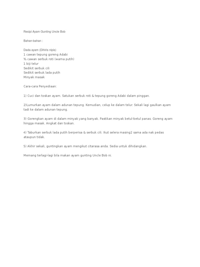 Lebih 4 6k Shares Wanita Ini Kongsi Resepi Ayam Gunting Rangup Mudah Ala Uncle Bob from images.says.com Ayam gunting uncle bob | cara buat ayam gunting uncle bob. Untuk pengetahuan anda, ayam gunting ini begitu murah sekali jika anda sediakan sendiri di rumah. Mudah sahaja rupanya untuk buat ayam gunting ala uncle bob ini. Ayam gunting pasar malam uncle bob homemade. Hafiz mz 16.841 views6 months ago. Hai assalamualaikum sis share macam mane nak buat ayam gunting uncle bob yang biase beli kat pasar malam tu. Invitescontact/?i=1s1dndaws5w3a& follow facebook acik.olyn follow facebook page acikamatclown. Bob's your uncle is a phrase commonly used in ireland, the united kingdom and commonwealth countries that means and there it is or and there you have it or it's done.