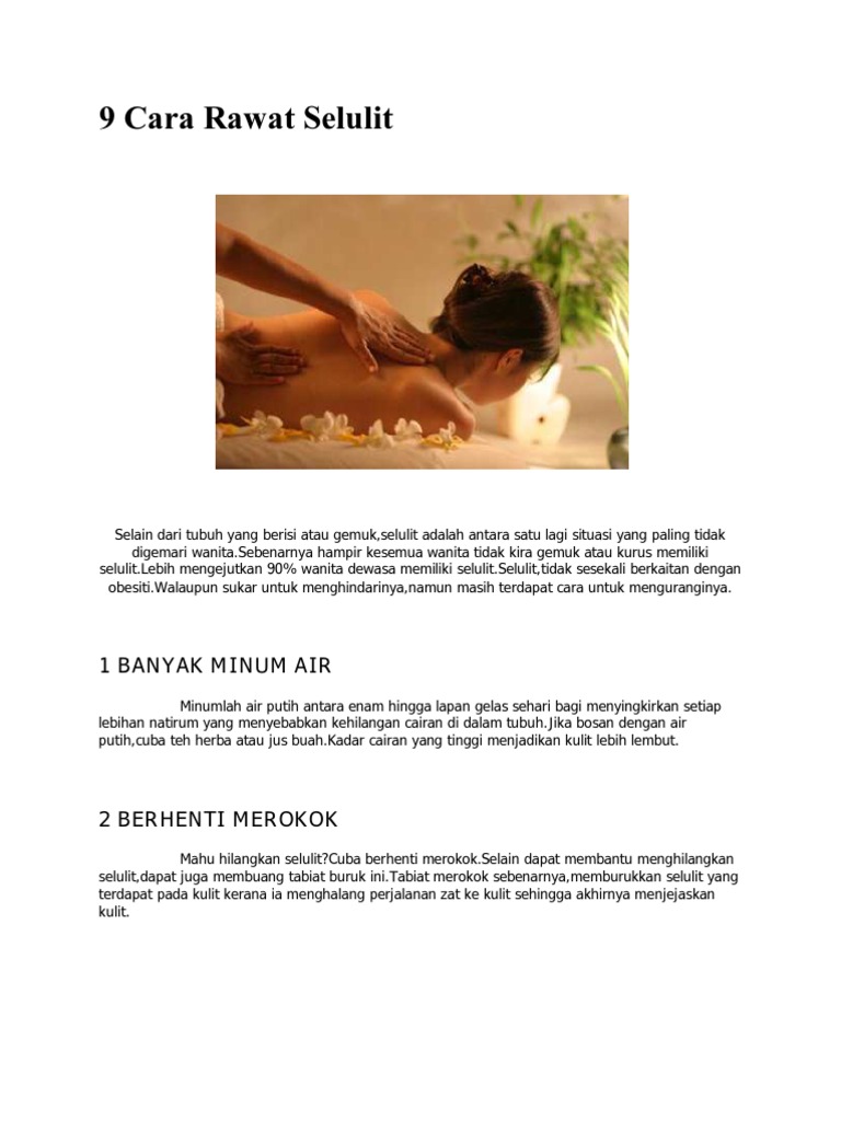 Kunci untuk menghilangkan selulit adalah membuang racun yang terkumpul dari tubuh dan seseorang dapat menghilangkan selulit secara alami dengan melakukan latihan, yoga, dan dengan. Selulit merupakan hal yang terkadang menjadi masalah besar bagi mereka yang mengalaminya. Pijat pada dasarnya dapat mengurangi selulit dengan meningkatkan drainase limfatik. Setelah kedua bahan tercampur rata. Untuk cara menghilangkan selulit dengan lebih cepat, anda bisa mengupayakan sejumlah latihan olahraga yang akan membantu anda mengurangi lemak tubuh serta mengencangkan kulit.