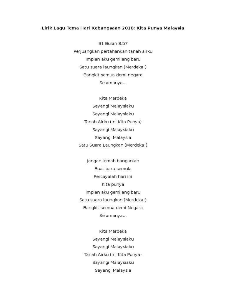 Related : Lirik Lagu Malaysia Kita Punya / 1 / Muzik video lagu tema hari kebangsaan 2018lagu :.